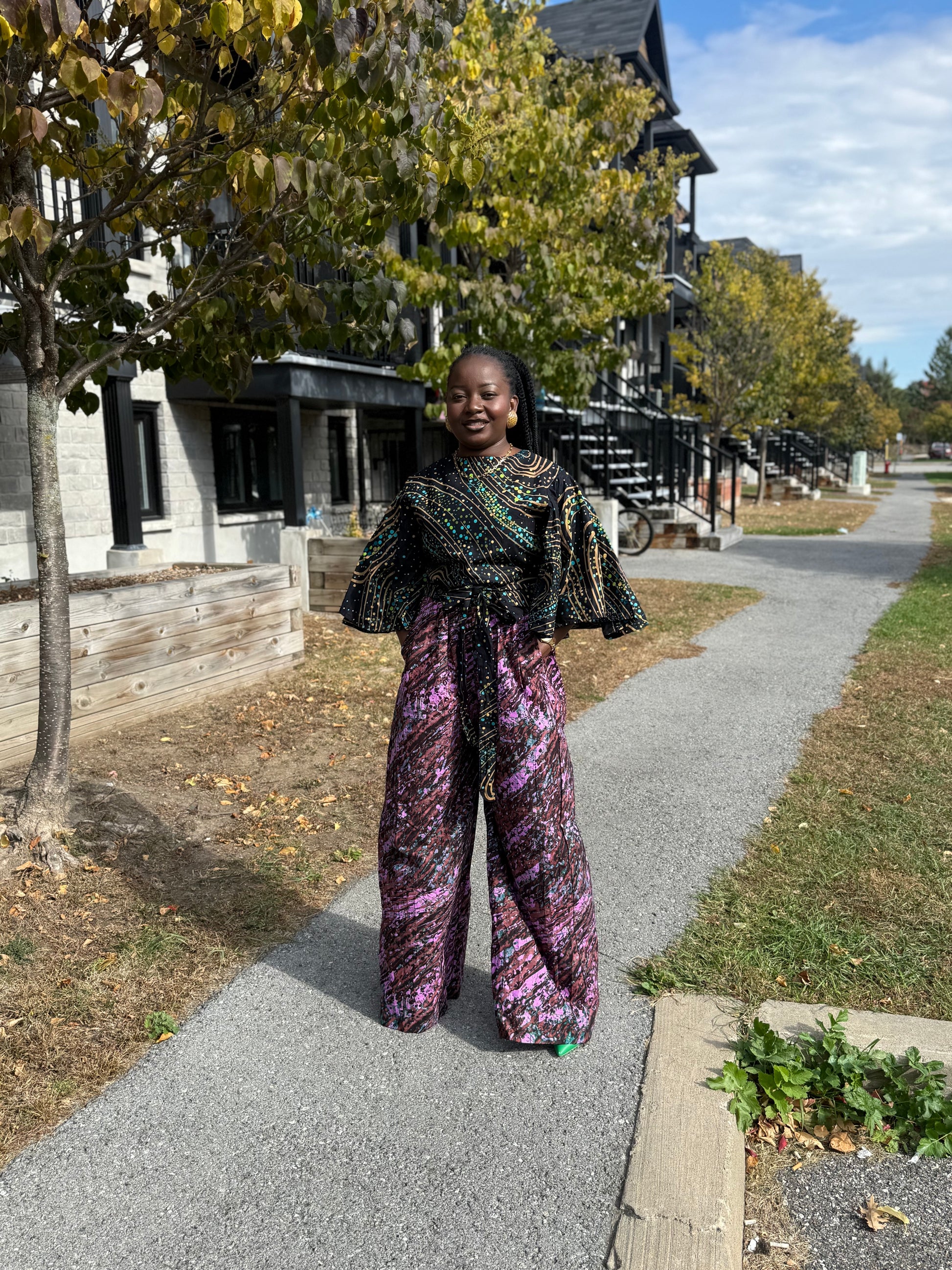 Upgrade your wardrobe with the versatile and vibrant CP set. This colorful pant and set top give you two ways to wear it, allowing you to choose your side. Experience the freedom to unleash your personal style and make a bold statement with every outfit.